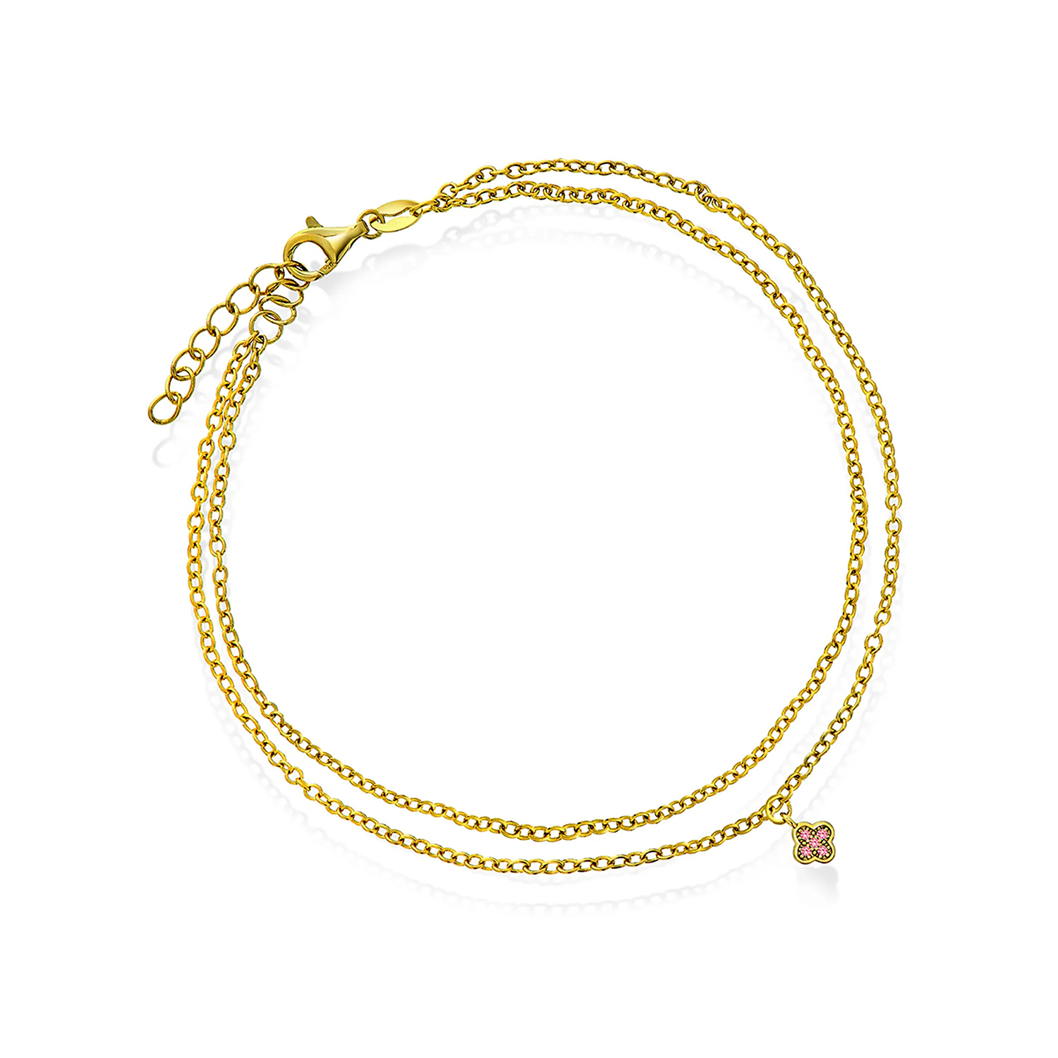 Ankelkjede i forgylt sølv med kløver og zirkonia, 25 cm