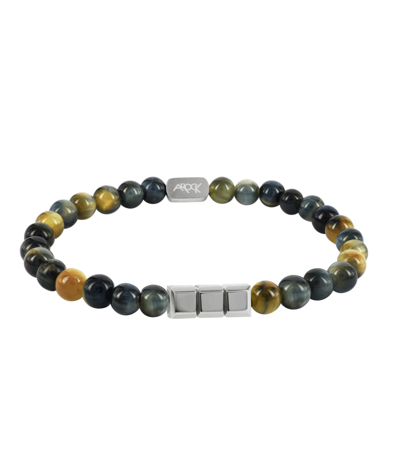 Elastisk armbånd med perler av edelstener og detaljer i kirurgisk rustfritt stål.