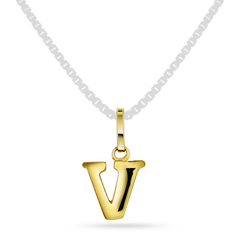 Bokstavsmykke i gult gull, V-anheng