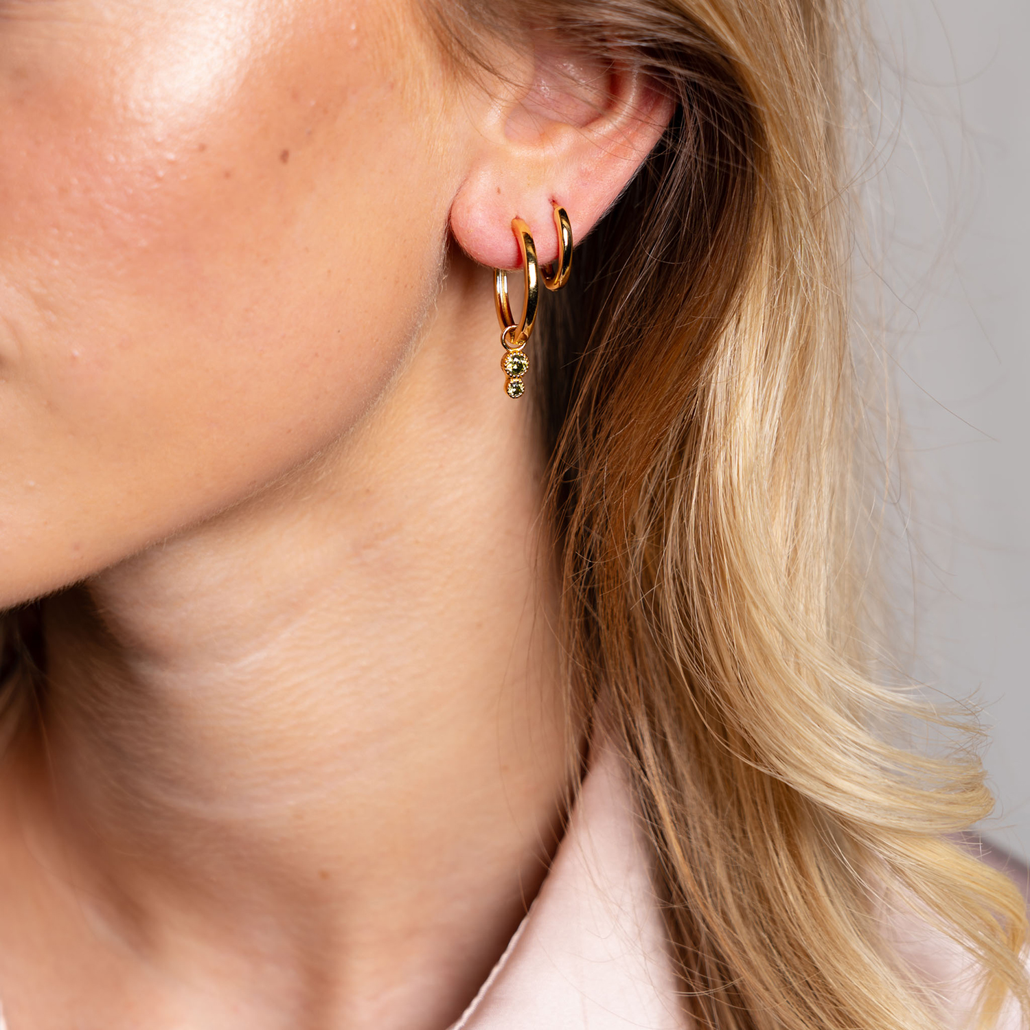 Duo charms i sølv med dus grønn zirkonia