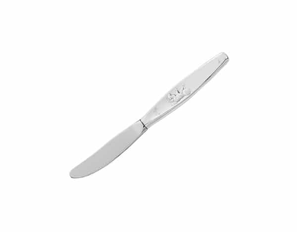 Barnekniv med skaft i den fineste sølv, med motiv inspirert av den velkjente bordbønnen, O du som metter liten fugl.