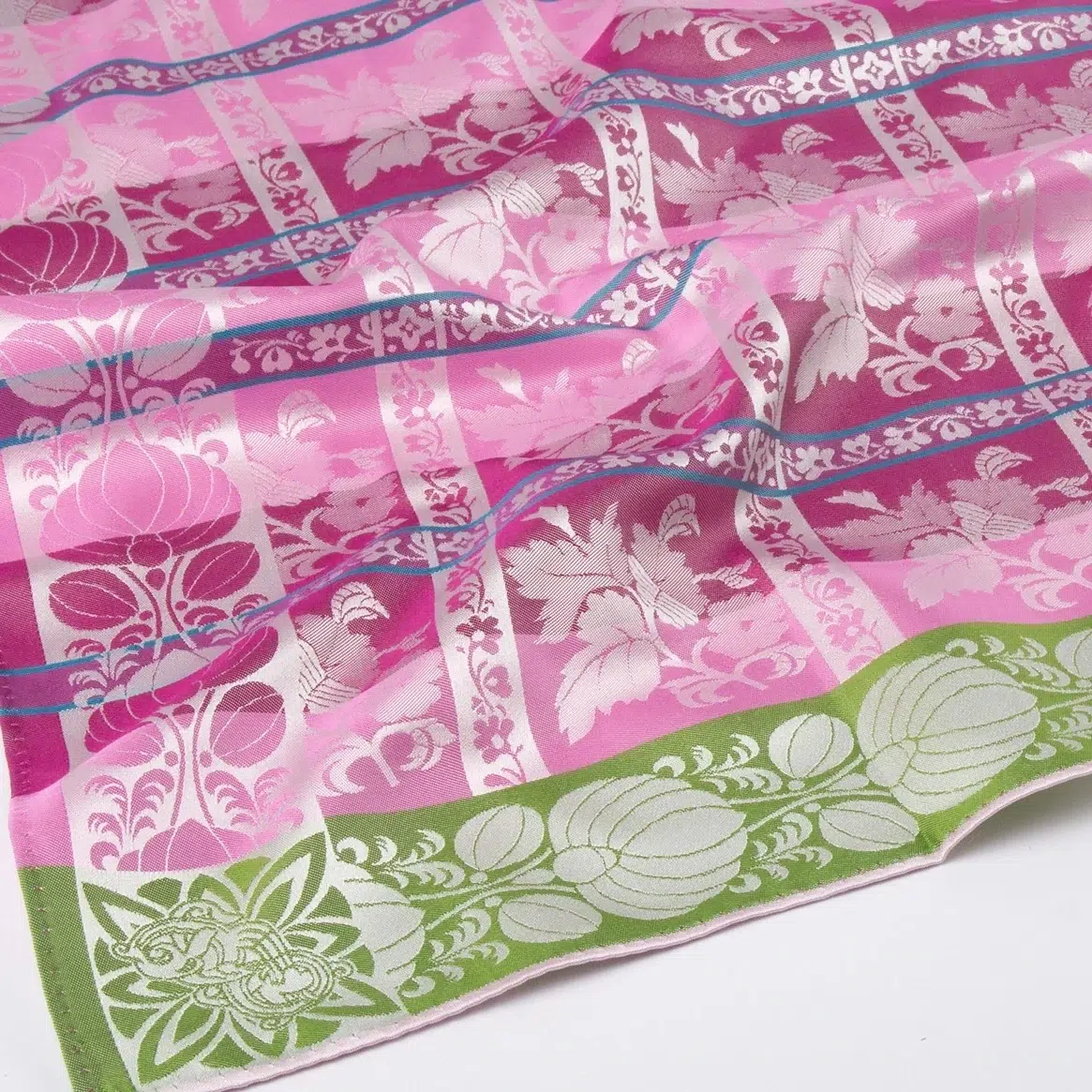 Jaqcuardvevd skjerf i 100% silke. 70x70cm.