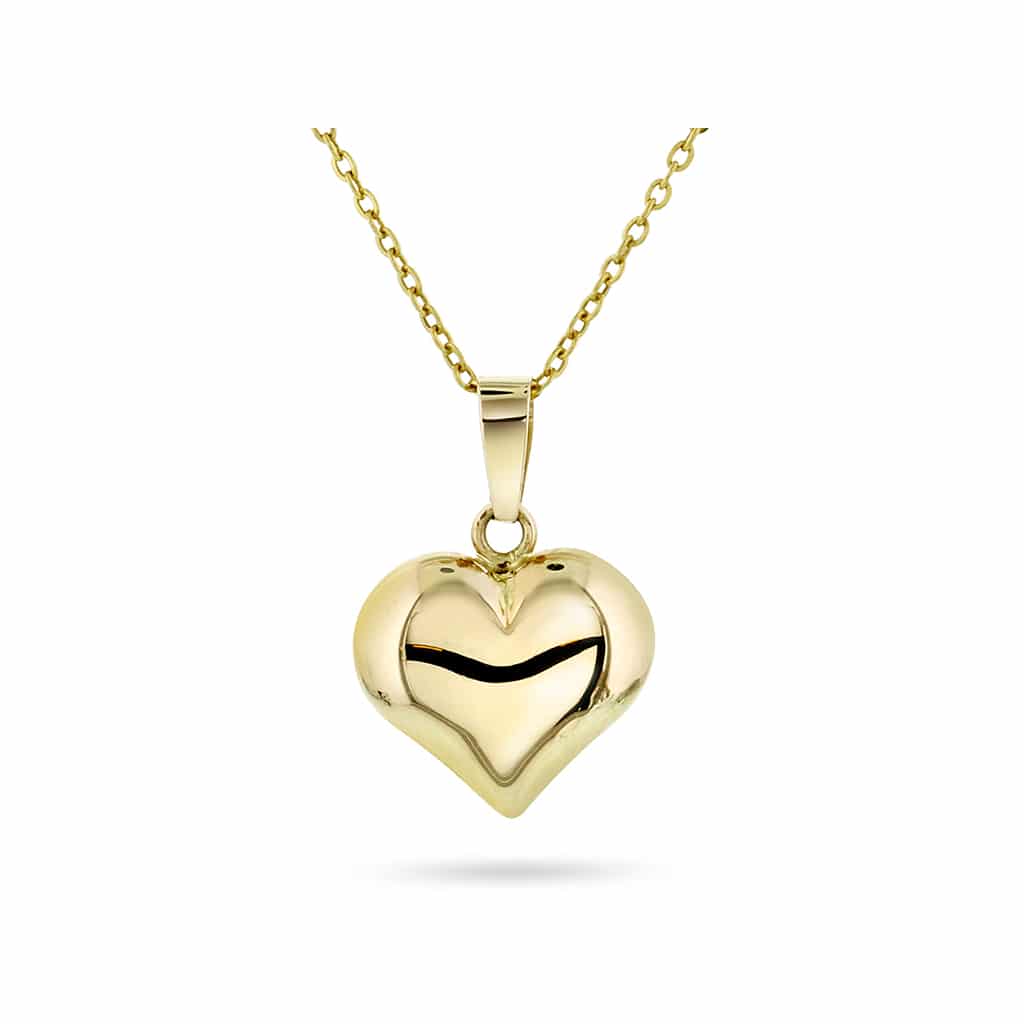 Hjertesmykke gravering i gult gull 10mm
