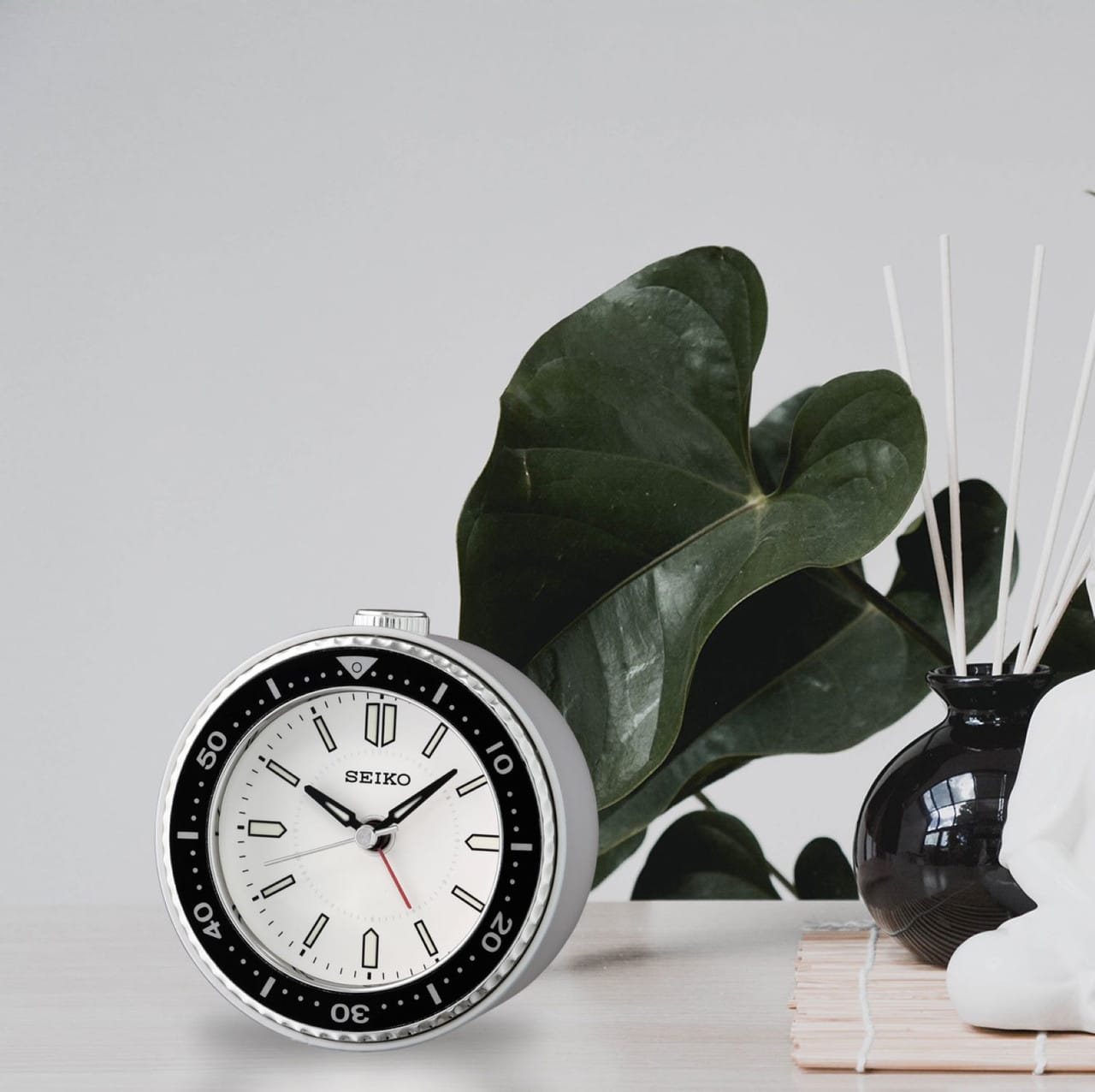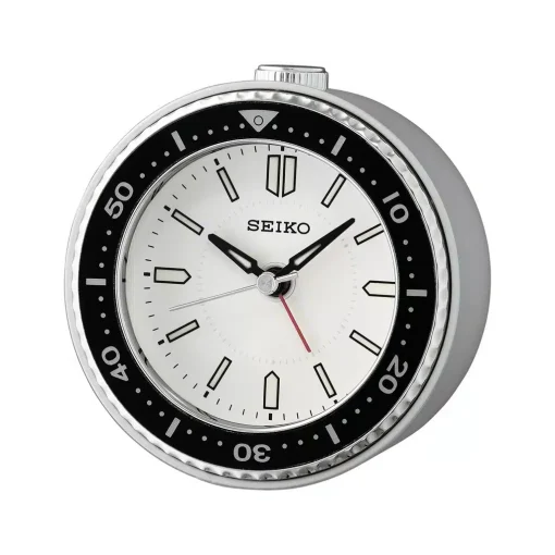 Seiko QHE184J er et tøft vekkerur med flytende sekundviser. Den har også selvlysende markører på tallskiven! Vekkeruret finnes i flere fargekombinasjoner og er inspirert av Seiko sitt klokkedesign. Utstyrt med quartz urverk, stillegående flytende sekundviser, beep alarm, snooze og lys. LED lys blinker når alarmen ringer.